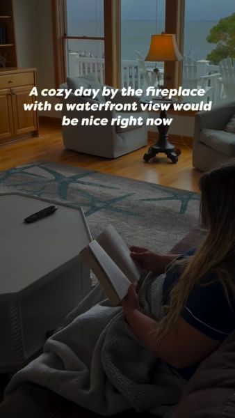 There’s nothing better this time of year than ending your Outer Banks vacation day by getting cozy by the fireplace with a stunning waterfront view 🌊🔥