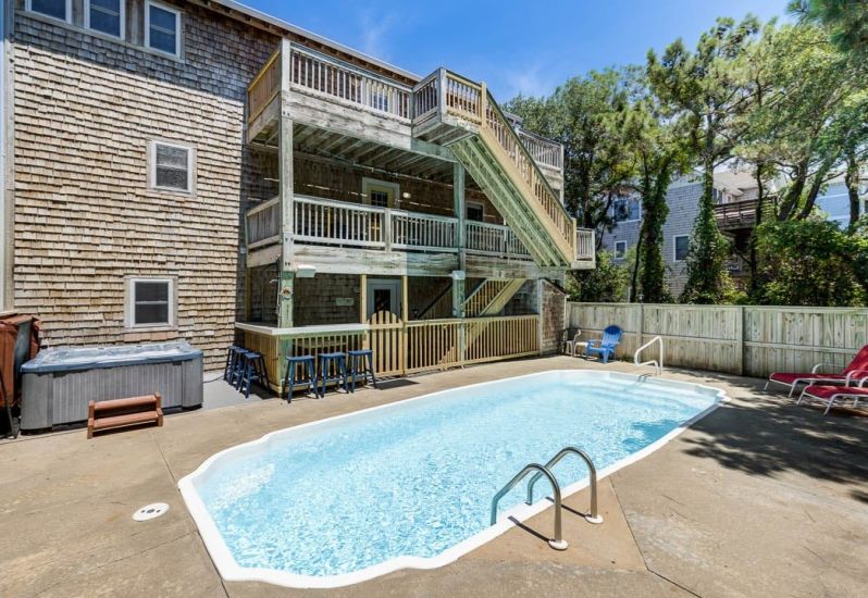 Homeplace is a 7 bedroom, dog-friendly home in Nags Head on the oceanside. The home offers a private pool, hot tub, pool table, and a $250 credit towards to beach gear rentals!๐