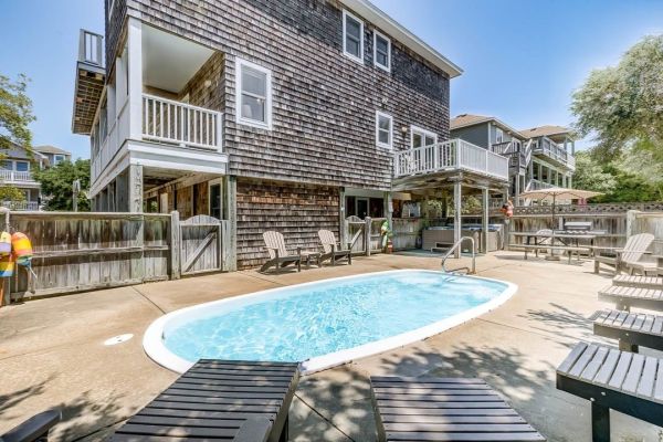 We Are Beachin is a 6 bedroom, dog-friendly, oceanside home that's new to Blue for 2026! The home offers a private pool, hot tub, foosball, easy access to the beach, and community... See More