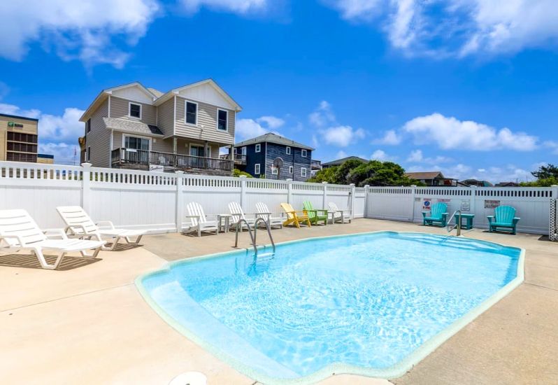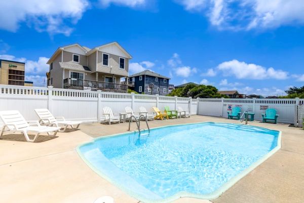 Casa Blanca is a 6 bedroom, semi-oceanfront home in Nags Head that offers a private pool, hot tub, and partial stays. Enjoy easy access to the beach and your new favorite restaurant!๐