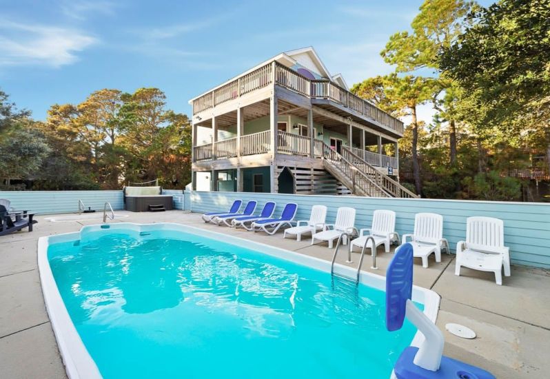 Barefoot Crab is a 7 bedroom, dog-friendly oceanside home in Corolla that offers a private pool, hot tub, kiddy pool, volleyball court, pool table, and basketball court. Whether you're new to the Outer Banks or looking to continue your vacation tradition in a new home, Barefoot Crab is the home to stay in!🦀