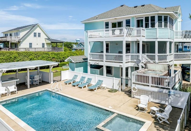 Beach Treat is a 6 bedroom, dog-friendly home in Duck that offers a private pool, hot tub, kiddie pool, elevator,... See More