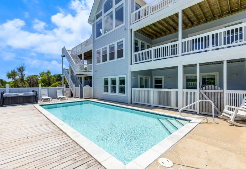Absolute Paradise is a 10 bedroom, dog-friendly home in Corolla that offers a heated private pool, elevator, theater room, beach gear credit, and more. Being in the Whalehead neighborhood, it conveniently located nearby grocery stores, local shops and restaurants, and just around the corner from the Coral St beach access!π