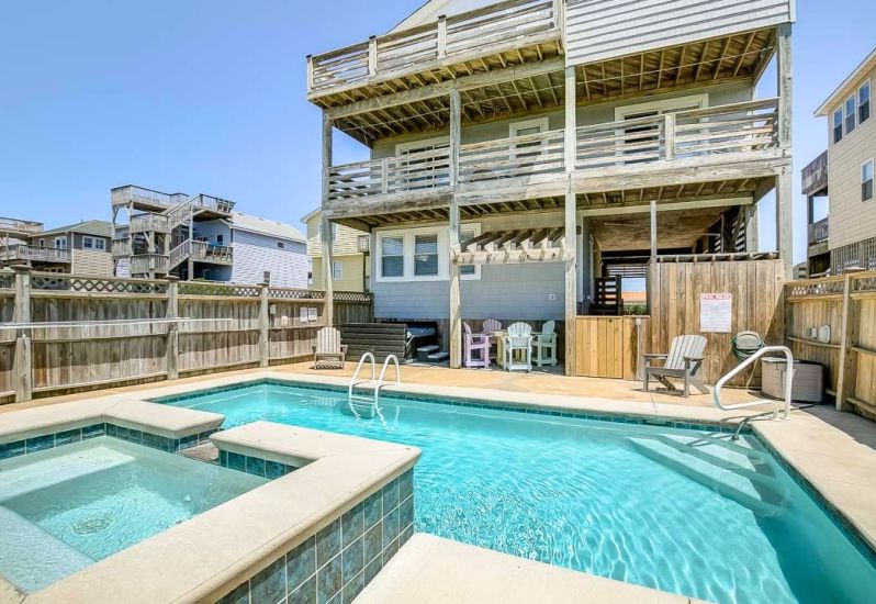 Fair Winds is a 5 bedroom, semi-oceanfront home in Nags Head that offers a private pool, hot tub, arcade game, pool table, and more. Guests noted that the home was perfect for their vacation from the spaciousness and amenities to the distance from the beach and views!🌅