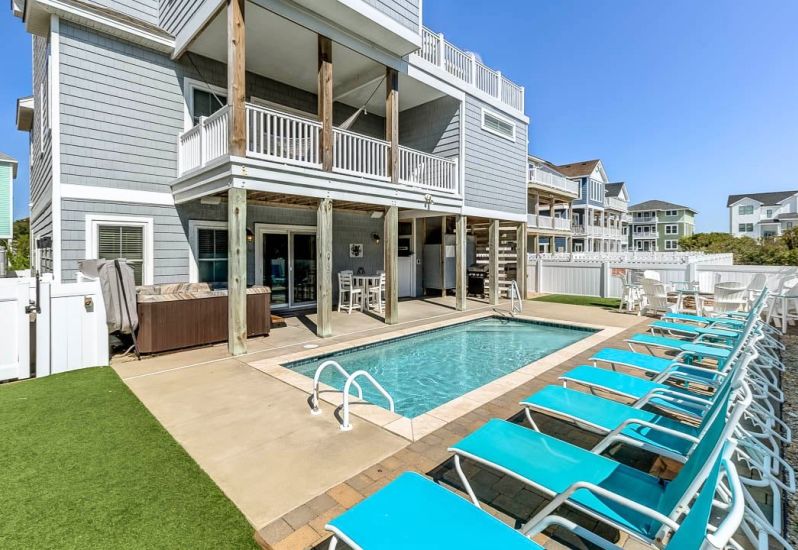 Eden Found is a 7 bedroom, oceanside home in Corolla that offers a private pool, elevator, hot tub, Blue Standard Bedding, and more. This home is nearby Food Lion and the Timbuck II Shopping center making it an idea location!📍