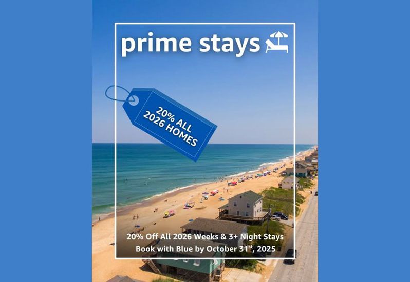 With our Prime Stays Special, book your 2026 Outer Banks vacation early this October and save 20% on weekly rentals or 3+ night stays! With early booking, you’ll secure the best dates, top property choices, and peace of mind. Enjoy a seamless Prime Stay experience with expert local support, VRHP-accredited cleaning, remote check-in, and 24/7 Blue Ribbon Service. Plan ahead and lock in both value and comfort for your Outer Banks getaway!