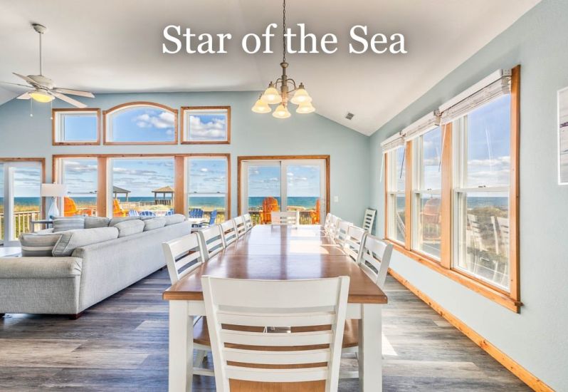 Star of the Sea is an oceanfront Nags Head property featuring a heated pool, hot tub, and private beach access, perfect for enjoying meals or sunrises on the deck. Inside, the rec room offers a... See More