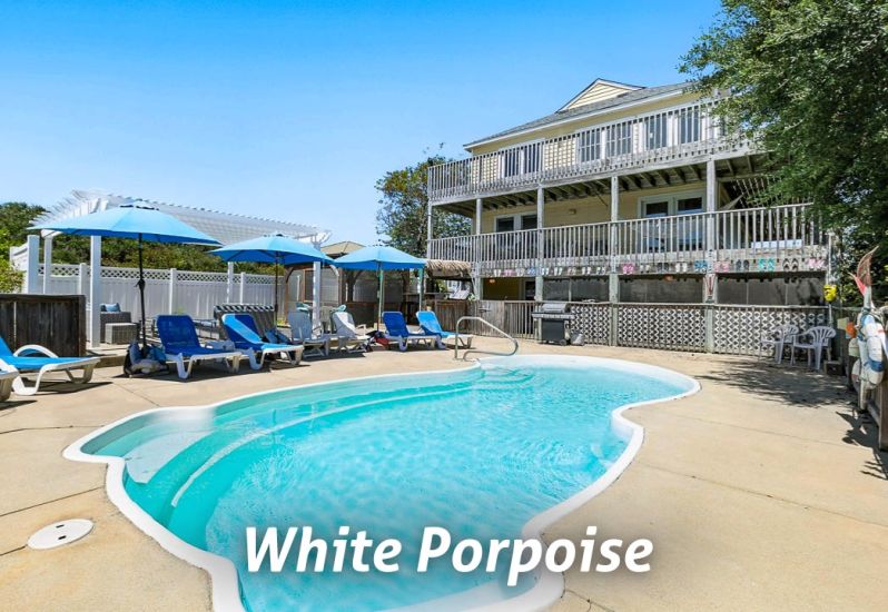 White Porpoise is a spacious six-bedroom, six-bath vacation home in Ocean Sands featuring a private solar-heated pool, elevator, ocean views, and multiple entertainment areas including a kid-friendly game room. Combining modern comforts with classic beach charm, it offers easy access to Duck and Corolla for shopping, dining, and outdoor adventures!π¬