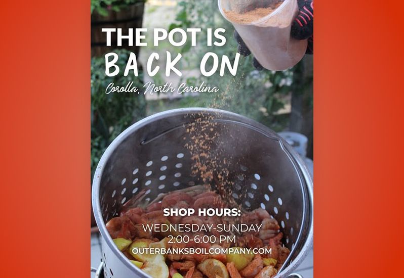 The pot is officially back on in Corolla 🦐🔥 We’re back to serving up the Best Pot on the Beach.