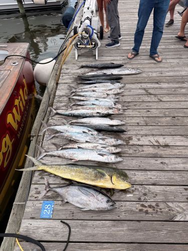 Pretty day on the water, and the crew made the most of it! The Offshore fleet headed out and returned with solid catches of Blackfin Tuna and Mahi Mahi—plus a few limits of King Mackerel for good measure. Nearshore action has been strong too, with plenty of Bluefish in the mix!