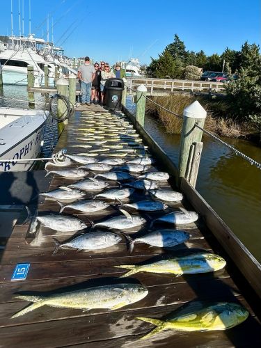 The wind and weather decided to calm down and give us some beautiful conditions! Our guys were able to get out and get it done today. They returned to the docks with boxes full of Mahi Mahi and Blackfin Tuna!