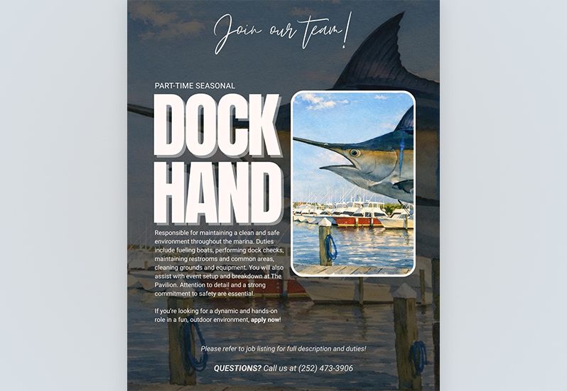 March 19 at 10:10am🚨WE ARE HIRING🚨 Come join our team! Job details on our website under careers. Link below 🔗 Apply OnlineClick here for more posts from Pirate's Cove MarinaPirate's Cove Marina 2000 Sailfish Dr.Manteo(252) 473-3906Website DirectionsCall us