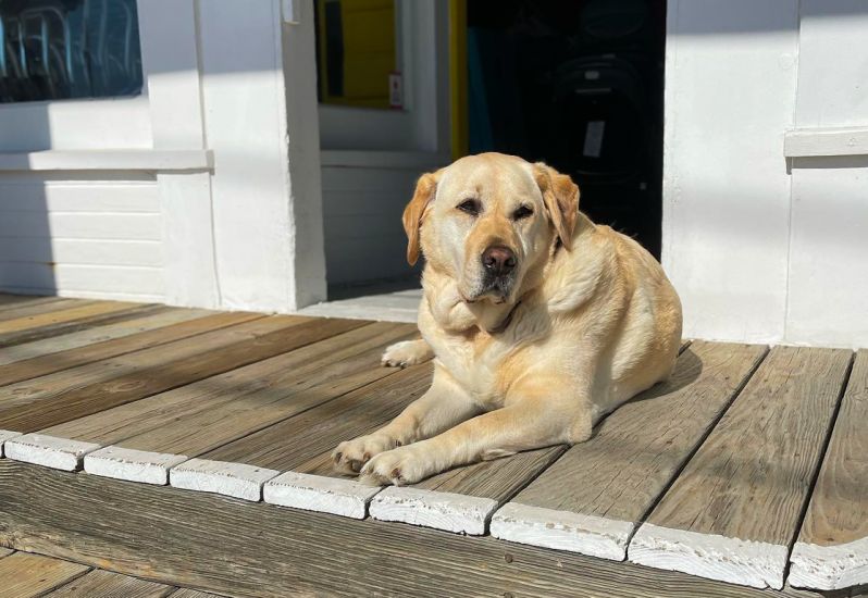 The welcoming committee is here! Stop by anytime between 10 a.m.-4 p.m. and say hello to June dog! 🐕🐾☀️
