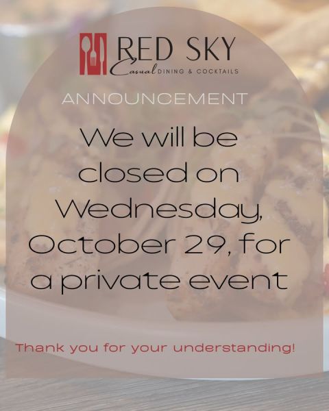 October 27 at 8:11pm via Click here for more posts from Red Sky Casual Dining & CocktailsRed Sky Casual Dining & Cocktails 1197 Duck RdDuck(252) 261-8646Website DirectionsCall us