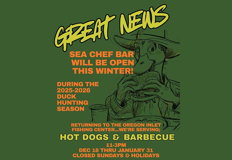 October 15 at 10:22amNothing beats hotdogs and BBQ after a morning of duck hunting. Come see us! 🦆 Visit Our WebsiteClick here for more posts from Sea Chef Dockside KitchenSea Chef Dockside Kitchen 8770 Oregon Inlet RoadNags Head(252) 441-3543Website DirectionsCall us