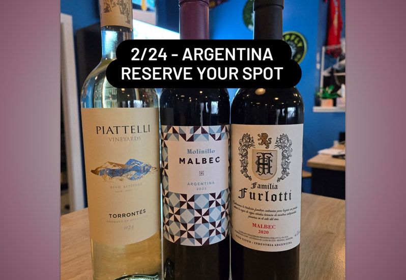 Grab your spot for our next wine tasting on Tuesday, February 24th at 6pm. It's an evening filled with delicious wines from Argentina.