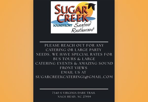 22 hours agoWe are opening March 26th, look forward to seeing you! ☀️ Please reach out for any catering inquiries! Visit Our WebsiteClick here for more posts from Sugar Creek Soundfront Seafood RestaurantSugar Creek Soundfront Seafood Restaurant 7340 S Virginia Dare TrailNags Head(252) 441-4963Website DirectionsCall us