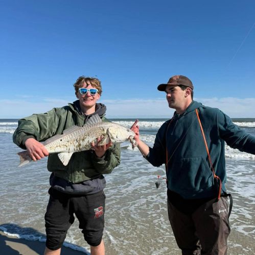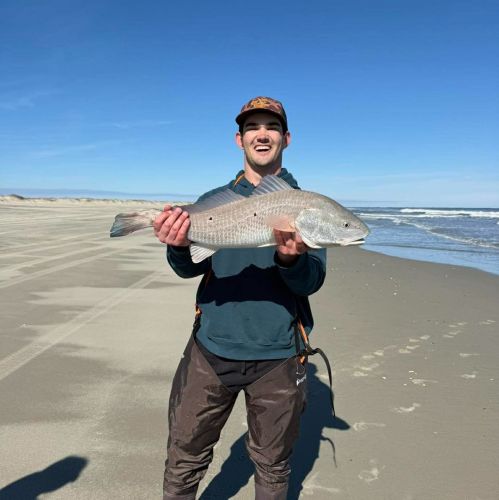 Daren McMorris, his wife Cindy, and their crew caught multiple Red Drum and Bluefish while fishing the surf side of Ocracoke Island today!