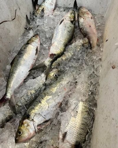 The water temp is sitting at 57° this morning right off of South Point - that Drum bite is going to turn on any minute! Sun is out and there’s fresh bait in the cooler, courtesy of our local commercial fisherman!