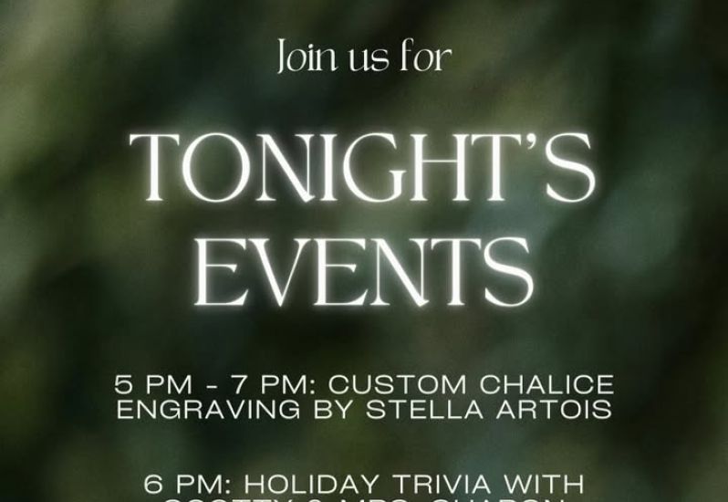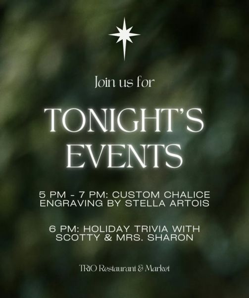 ‼️TONIGHT‼️ Custom Stella Artois chalice engraving at 5pm, followed by holiday trivia at 6pm! Did we mention that the prize for the winning trivia team is a $100 TRiO gift certificate? Plus, earn bonus points for wearing your Christmas sweater or pajamas. See you tonight!