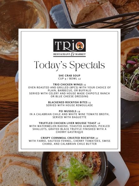 January 21 at 11:00am via Click here for more posts from TRiO Restaurant & MarketTRiO Restaurant & Market 3708 N. Croatan HighwayThe Bypass, MP 4.5Kitty Hawk(252) 261-0277Website DirectionsCall us
