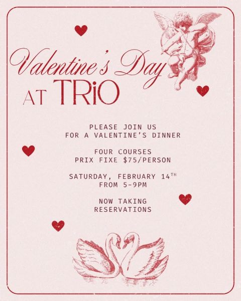 January 26 at 12:43pm via Swipe for a look at our Valentine’s Day menu đŸ’˜ Book your table with the link in our bio! Click here for more posts from TRiO Restaurant & MarketTRiO Restaurant & Market 3708 N. Croatan HighwayThe Bypass, MP 4.5Kitty Hawk(252) 261-0277Website DirectionsCall us