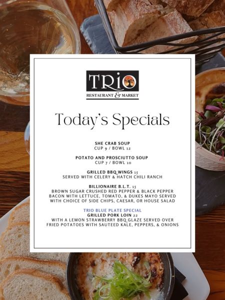 3 hours ago via Click here for more posts from TRiO Restaurant & MarketTRiO Restaurant & Market 3708 N. Croatan HighwayThe Bypass, MP 4.5Kitty Hawk(252) 261-0277Website DirectionsCall us