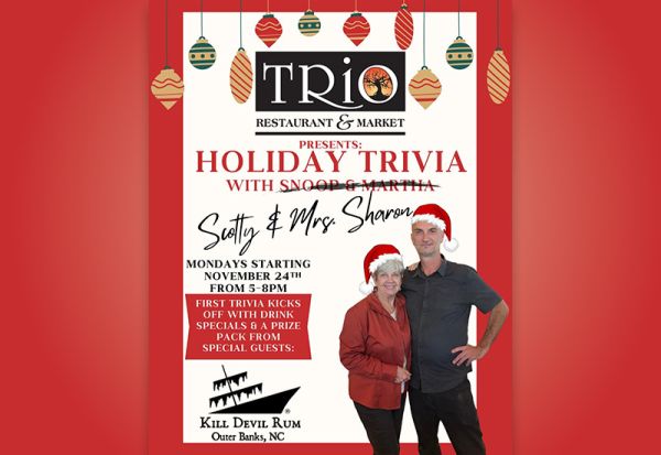 Coming soon! ๐ Come join the fun every Monday starting November 24th for Holiday Trivia at Trio! Test your knowledge, enjoy festive drink specials, and spend time with your favorite people this holiday season.