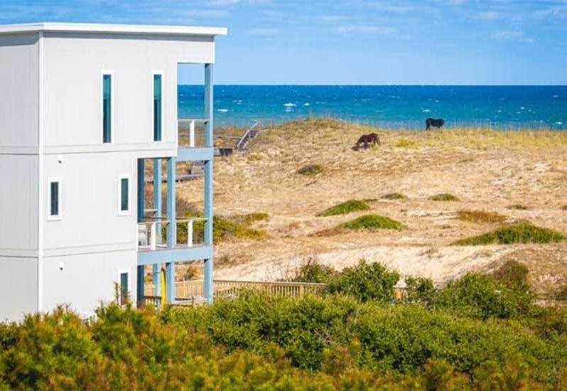 Experience the magic of Carova at Mare Dei Cavalli (V22298), a modern semi-oceanfront retreat located approximately 9.5 miles up the 4x4 beach, where the Corolla Wild Horses roam freely. Set on a sprawling 2.26-acre lot, this home is designed for entertaining with ocean-view living spaces, multiple ensuite bedrooms, and a spacious rec room complete with games and a wet bar. Featured as one of the Top 10 Modern Vacation Homes on the Outer Banks, this one-of-a-kind getaway blends luxury with wild coastal beauty. 🐎 🌊