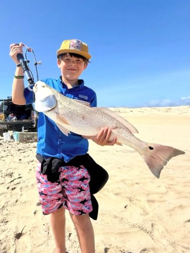 While we have also been anxiously awaiting a consistent Drum bite up this way, Chris sent us his picture with a nice Black Drum caught on Friday at Oregon Inlet! Hopefully, we’ll continue to see more Black Drum and Puppy Drum continue to head this way! Happy birthday shout out to Byron! His family came in to get rigged up and the birthday boy got himself a nice birthday Drum! @ameliakfarrar