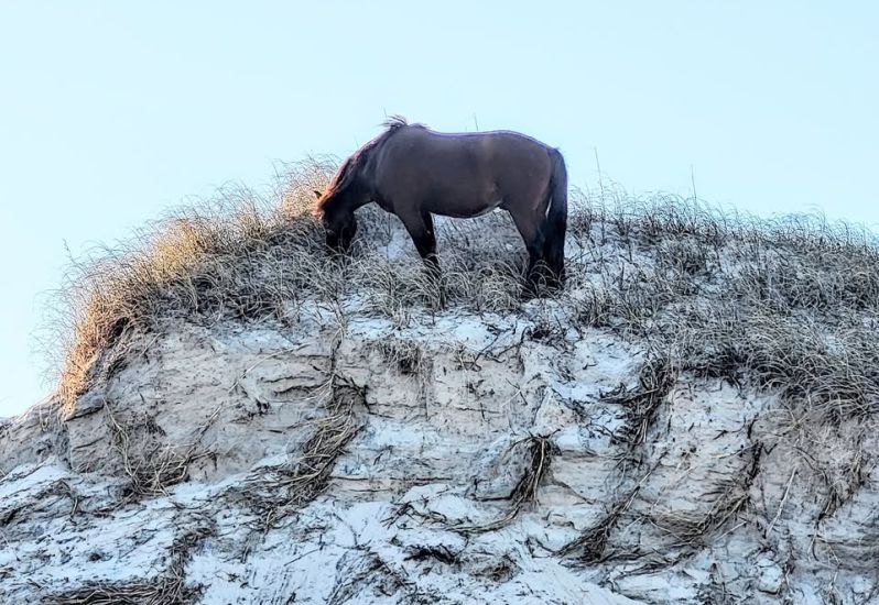 Our tour guide extraordinaire, Ned, shares this indulgent, nearly surreal moment with us. "A horse walking the sketchy dune line, eating the last of the sea oats." It can initially draw such a bittersweet emotion but, knowing that these horses endure, we find comfort in knowing that it is just the beginning of their quietest season. Thanks for this peaceful moment, Ned!